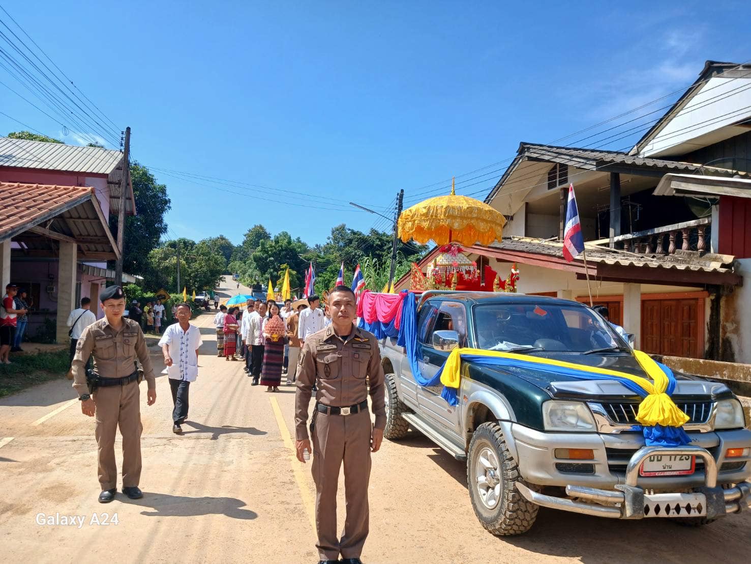 สภ.แม่จริม ภ.จว.น่าน วันนี้ (25 ต.ค.67) เวลา 13.00 น. โดยการอำนวยการของ พ.ต.อ.วสันติ์ หมั่นสลุง ผกก.สภ.แม่จริม มอบหมายให้ พ.ต.ท.วีฬเวชน์ ร้านชิตวงศ์ รอง ผกก.ป.สภ.แม่จริม, พ.ต.ท.มนตรี ขอดเตชะ สวป.สภ.แม่จริม พร้อมด้วย ร้อยเวร 20 และสายตรวจ เข้าร่วมพิธีขบวนแห่องค์กฐินเข้าสู่วิหารวัดบวกแรด อำนวยความสะดวกด้านการจราจรและรักษาความสงบเรียบร้อยให้กับประชาชนผู้มาร่วมงาน ณ บ้านบวกแรด หมู่ที่ 5 ตำบลหมอเมือง อำเภอแม่จริม จังหวัดน่าน