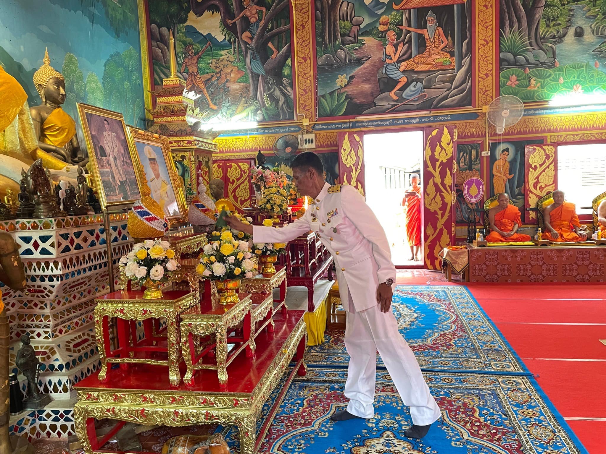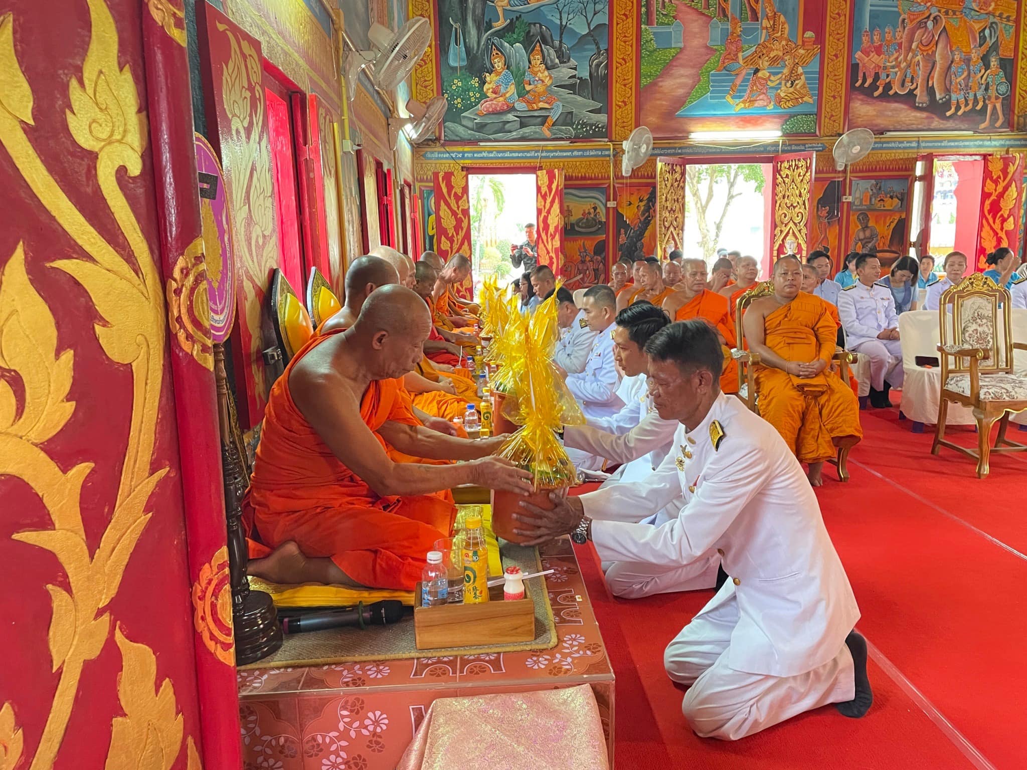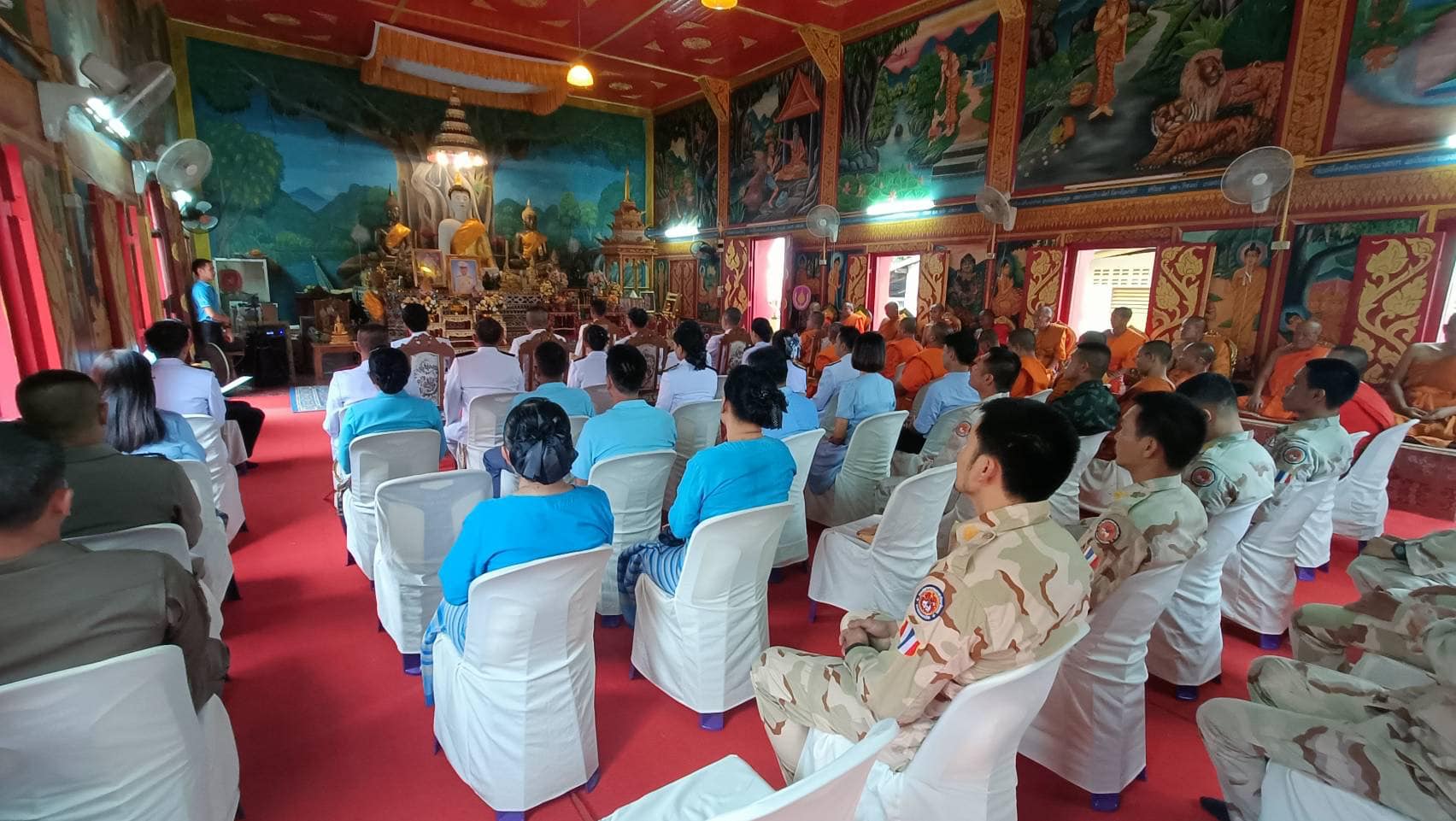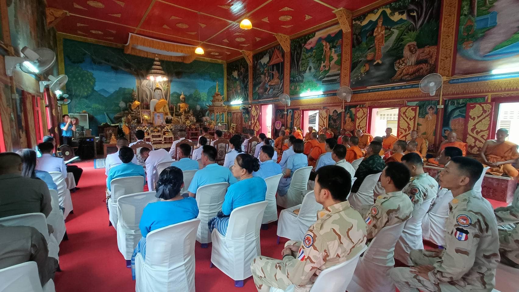 สภ.แม่จริม ภ.จว.น่าน วันนี้ (29 เม.ย.2567) เวลา 17.00 น. โดยการอำนวยการของ พ.ต.อ.วสันติ์ หมั่นสลุง ผกก.สภ.แม่จริม มอบหมายให้ พ.ต.ต.มนตรี ขอดเตชะ สวป.สภ.แม่จริม, ร.ต.อ.ปารย์ คำมีไสว รอง สว.สส.สภ.แม่จริม, ร.ต.อ.ชาญชัย ซาอินทร์ รอง สว.สส.สภ.แม่จริม พร้อมด้วยข้าราชการตำรวจในสังกัด เข้าร่วมพิธีเจริญพระพุทธมนต์และเจริญจิตภาวนา ถวายพระพรชัยมงคล แด่พระบาทสมเด็จพระเจ้าอยู่หัว เนื่องในโอกาสพระราชพิธีมหามงคลเฉลิมพระชนมพรรษา 6 รอบ 28 กรกฎาคม 2567 และเนื่องในโอกาสวันคล้ายวันประสูติ สมเด็จพระเจ้าลูกยาเธอ เจ้าฟ้าทีปังกรรัศมีโชติ มหาวชิโรตตมางกูร สิริวิบูลยราชกุมาร 29 เมษายน 2567 ณ วัดนาคา หมู่ที่ 4 ตำบลหนองแดง อำเภอแม่จริม จังหวัดน่าน โดยมีหัวหน้าส่วนราชการ หัวหน้าหน่วยงานรัฐวิสาหกิจ นายกองค์กรปกครองส่วนท้องถิ่น กำนัน ผู้ใหญ่บ้านและประชาชนเข้าร่วม จำนวน 120 คน โดยมีนายสิโรตม์ ชมใจ นายอำเภอแม่จริม เป็นประธานในพิธี