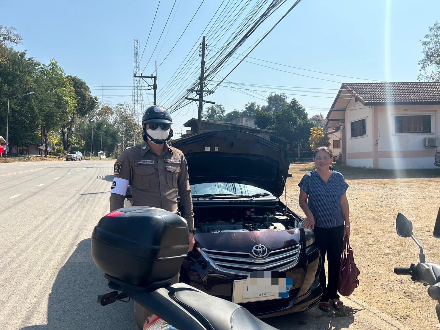 สภ.แม่จริม วันนี้( 8 ก.พ. 2567 ) เวลา 14.30 น. โดยการอำนวยการของ พ.ต.อ.วสันติ์ หมั่นสลุง ผกก.สภ.แม่จริม ,พ.ต.ท.วีฬเวชน์ ร้านชิตวงค์ รองผกก.ป.สภ.แม่จริม, พ.ต.ท.มนตรี ขอดเตชะ สวป.สภ.แม่จริม ได้มอบหมายให้ ส.ต.ท.ยุทธพิชัย ณ ลำปาง ผบ.หมู่(ป.)ฯ ออกปฏิบัติหน้าที่อำนวยความสะดวกด้านการจราจร ให้กับประชาชนในเขตพื้นที่รับผิดชอบ ระหว่างปฎิบัติหน้าที่ได้รับแจ้งจากประชาชนขอความช่วยเหลือรถยนต์สตาร์ทไม่ติด จึงได้เข้าทำการช่วยเหลือสามารถเดินทางต่อไปได้ เหตุเกิดบริเวณ หน้าธนาคารออมสิน สาขาแม่จริม ม.4 ต.หนองแดง อ.แม่จริม โดยหลังจากการดำเนินการประชาชนได้รับความพึงพอใจและสามารถเดินทางต่อไปได้
