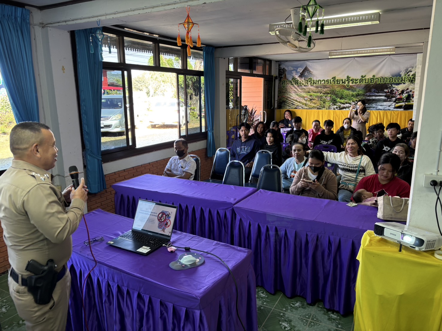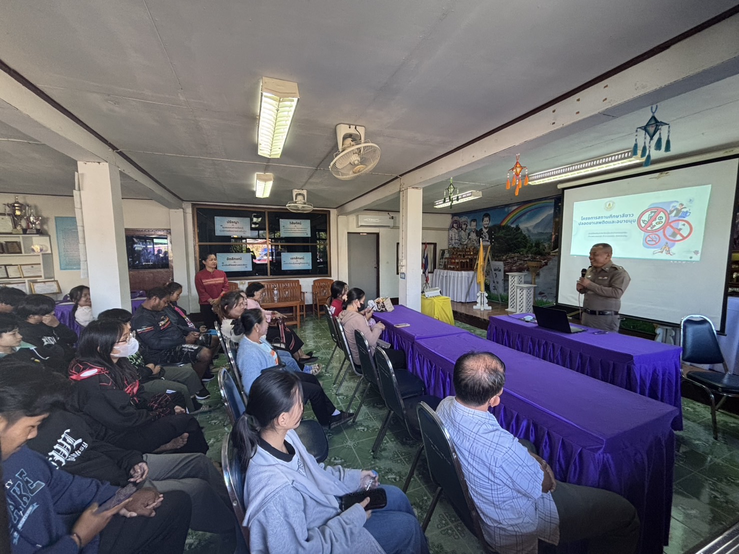 สภ.แม่จริม ภ.จว.น่าน วันนี้ (25 ธ.ค.67) เวลา 09.00 น. โดยการอำนวยการของ พ.ต.อ.วสันติ์ หมั่นสลุง ผกก.สภ.แม่จริม, พ.ต.ท.วีฬเวชน์ ร้านชิตวงศ์ รอง ผกก.ป.สภ.แม่จริม, พ.ต.ท.มนตรี ขอดเตชะ สวป.สภ.แม่จริม มอบหมายให้ ร.ต.อ.พงศ์พันธุ์ มีสา รอง สวป.สภ.แม่จริม พร้อมด้วย ชุด ชมส.สภ.แม่จริม ร่วมเป็นวิทยากรให้ความรู้ เสริมสร้างภูมิคุ้มกันชีวิต ห่างไกลยาเสพติด แก่นักศึกษา ณ ศูนย์การศึกษานอกระบบและการศึกษาตามอัธยาศัยอำเภอแม่จริม กศน.อำเภอแม่จริม ม.5 ต.หนองแดง อ.แม่จริม จ.น่าน