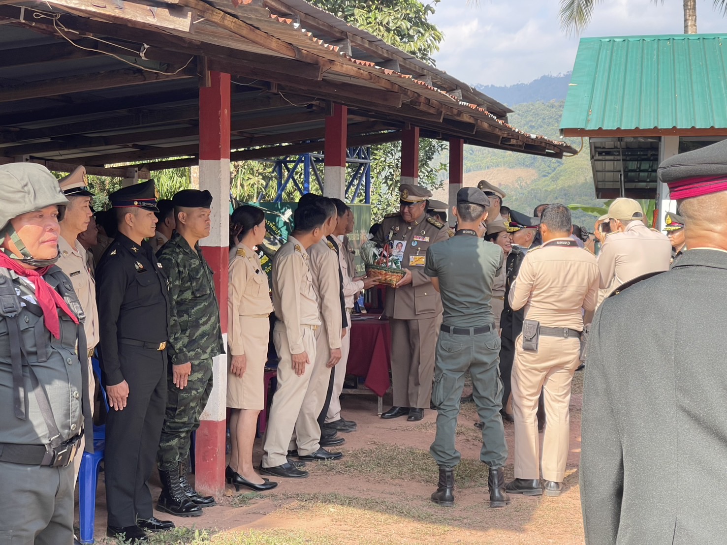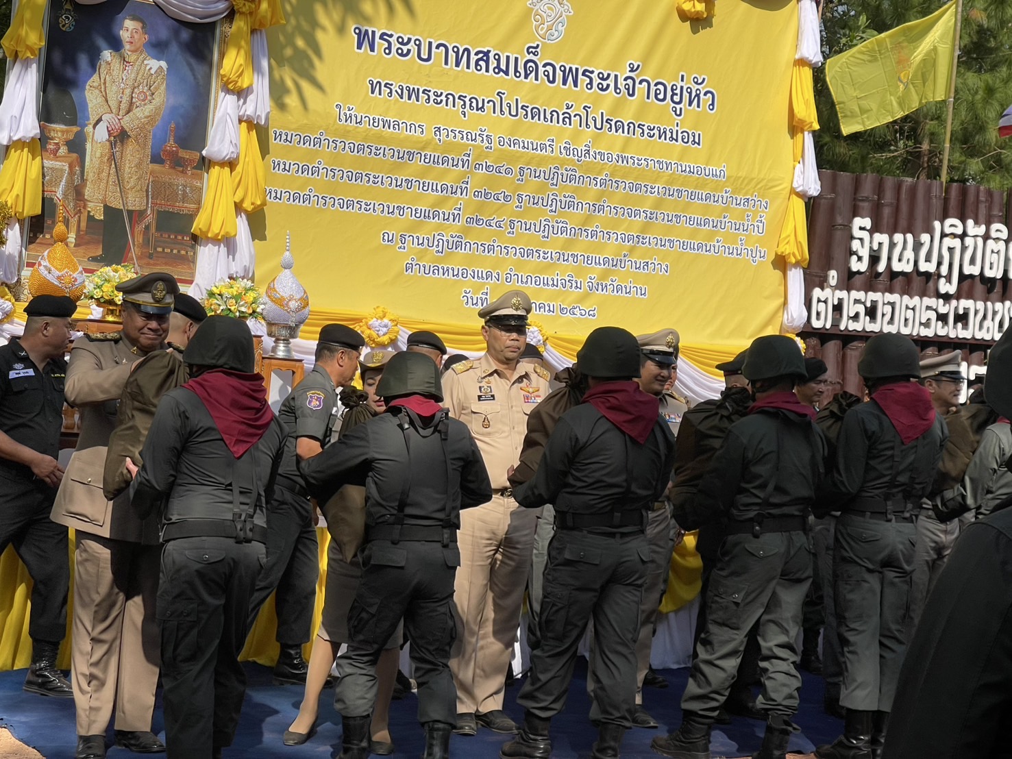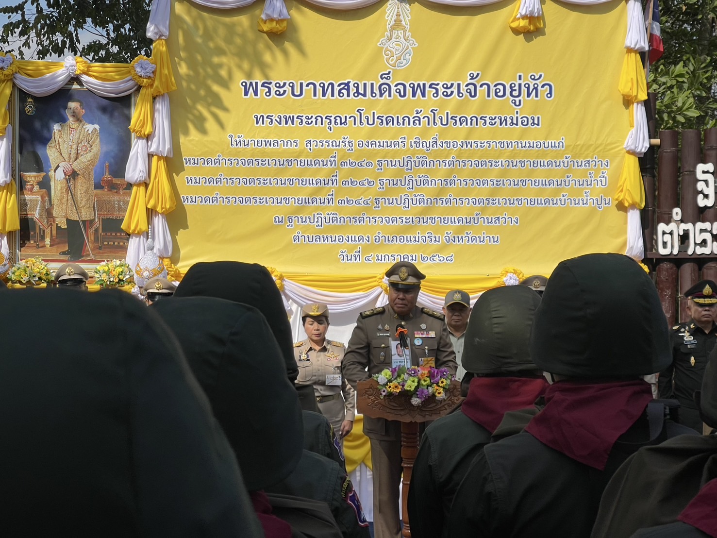 สภ.แม่จริม ภ.จว.น่าน วันนี้ (4 ม.ค.2567 เวลา 14.20 น.) โดยการอำนวยการของ พ.ต.อ.วสันต์ หมั่นสลุง ผกก.สภ.แม่จริม มอบหมายให้ พ.ต.ท.วีฬเวชน์ ร้านชิตวงศ์ รอง ผกก.ป.สภ.แม่จริม, พ.ต.ท.มนตรี ขอดเตชะ สวป.สภ.แม่จริม พร้อมด้วยข้าราชการตำรวจในสังกัด ให้การต้อนรับ-ส่ง นายพลากร สุวรรณรัฐ องคมนตรี ตลอดรวมถึงการรักษาความปลอดภัยและอำนวยความสะดวกด้านการจราจร ให้กับ นายพลากร สุวรรณรัฐ องคมนตรี เดินทางมาติดตามและขับเคลื่อนโครงการอันเนื่องมาจากพระราชดำริ ณ ฐานปฏิบัติการ ตำรวจตระเวนชายแดน ตชด.3244 บ้านสว่าง ต.หนองแดง อ.แม่จริม จว.น่าน จนเสร็จสิ้นภารกิจ ผลการปฎิบัติเป็นไปด้วยความเรียบร้อย