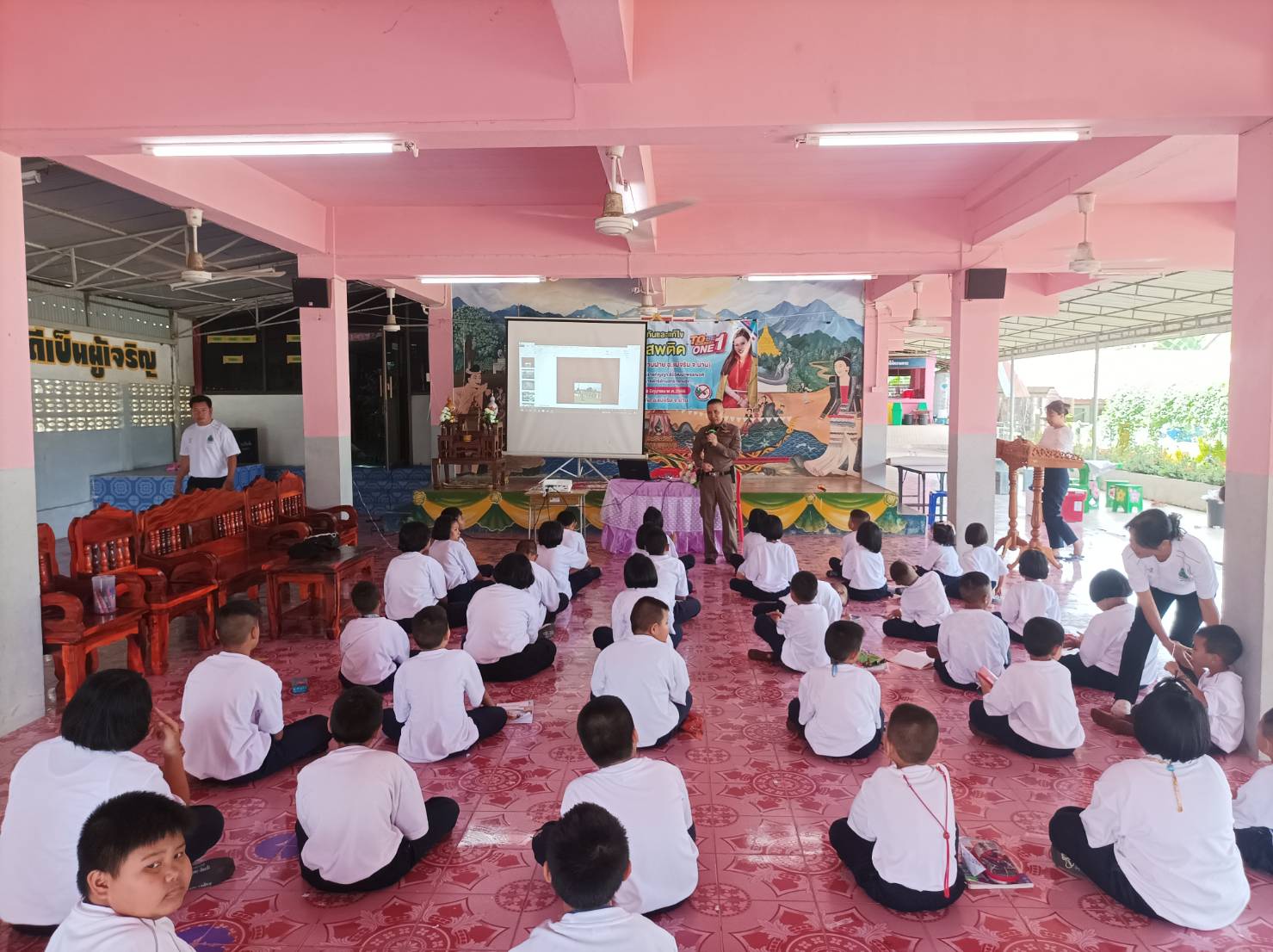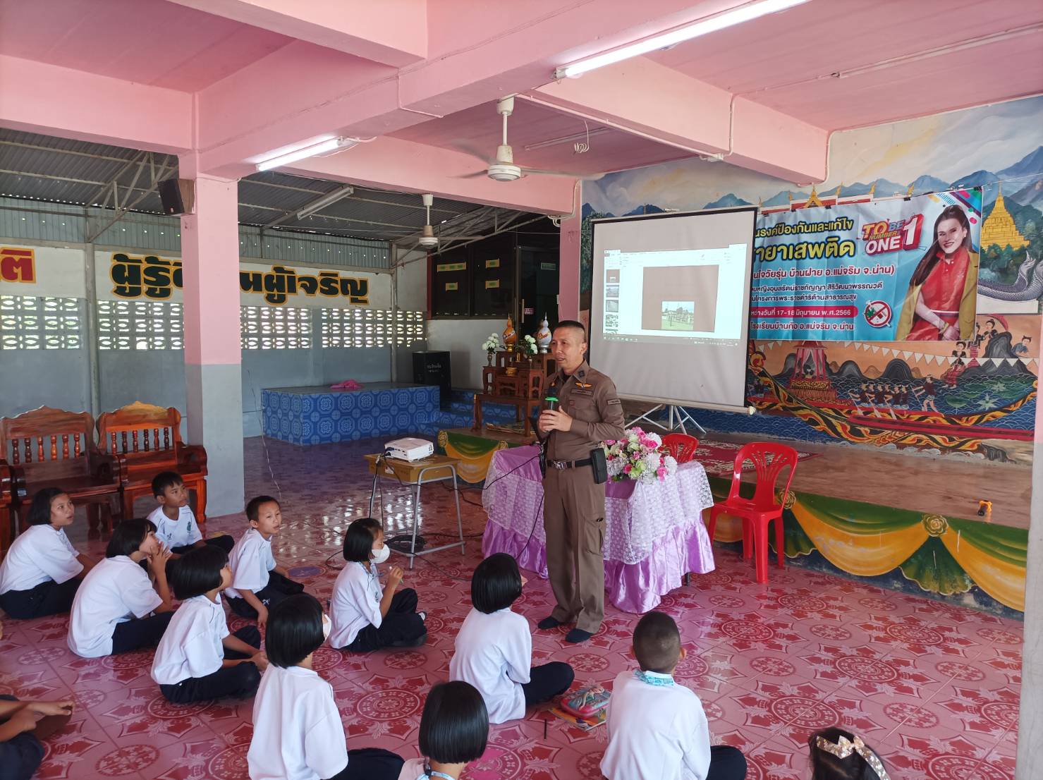 สภ.แม่จริม ภ.จว.น่าน วันที่ (23 มิถุนายน 2566) เวลาประมาณ 10.00 น. - 12.00 น. โดยการอำนวยการของ พ.ต.อ.ปรีชา เนตรประชา ผกก. สภ.แม่จริม , พ.ต.ท.อนันต์ พรมมา รอง ผกก.ป. สภ.แม่จริม , พ.ต.ท.บุญมาก กันบุญ สวป.สภ.แม่จริม มอบหมายให้ ร.ต.อ.วิชาญ ชินายศ รอง สวป.สภ.แม่จริม พร้อมด้วย ส.ต.ท.ยุทธพิชัย ณ ลำปาง ผบ.หมู่ (ป.) ฯ เจ้าหน้าที่ตำรวจจราจร ทำหน้าที่เป็นวิทยากรให้ความรู้เรื่อง โทษและพิษภัยของยาเสพติดและกฎหมายจราจรแก่นักเรียน โรงเรียนบ้านก้อ ณ ห้องประชุมโรงเรียนบ้านก้อ ต.แม่จริม อ.แม่จริม จ.น่าน