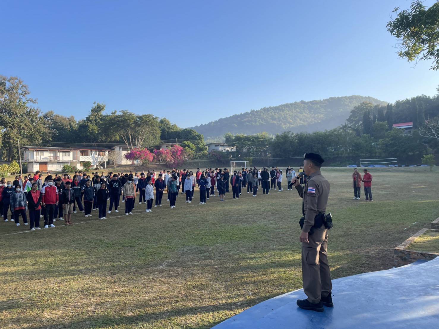 สภ.แม่จริม ภ.จว.น่าน วันนี้ (28 ธ.ค.2566) เวลา 08.00 น. โดยการอำนวยการของ พ.ต.ท.วีฬเวชน์ ร้านชิตวงศ์ รอง ผกก.ป.ฯ รรท.ผกก.สภ.แม่จริม พ.ต.ท.มนตรี ขอดเตชะ สวป.สภ.แม่จริม , มอบหมายให้ ร.ต.อ. วิชาญ ชินายศ รอง สวป.สภ.แม่จริม พร้อมด้วย ร.ต.ท.สมศักดิ์ สมทรง รอง สว.(ป.) สภ.แม่จริม บรรยายให้ความรู้กฎแห่งความปลอดภัยด้านการจราจร ปัญหาการระบาดของยาเสพติดในสถานศึกษา ให้แก่นักเรียนมัธยมโรงเรียนแม่จริม