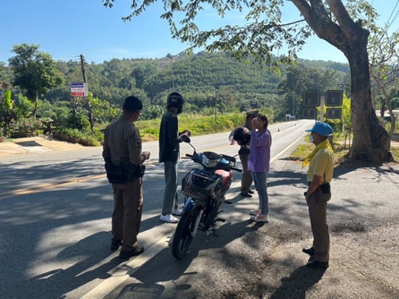 สภ.แม่จริม ภ.จว.น่าน วันนี้ (6ธ.ค.2566)เวลา 10.00 – 12.00 น. โดยการอำนวยการของ พ.ต.อ.วสันติ์ หมั่นสลุง ผกก.สภ.แม่จริม , พ.ต.ท.วีฬเวชน์ ร้านชิตวงศ์ รอง ผกก.ป.สภ.แม่จริม มอบหมายให้ พ.ต.ท.มนตรี ขอดเตชะ สวป.สภ.แม่จริม พร้อมด้วย ร.ต.อ.วิชาญ ชินายศ รอง.สวป.สภ.แม่จริม ร้อยเวร 20 และเจ้าหน้าที่ตำรวจจราจร , สายตรวจรถยนต์ รวมจำนวน 8 นาย ตั้งจุดตรวจเพื่อกวดขันวินัยจราจร ณ จุดตรวจหน้า สภ.แม่จริม ตามแผนการขออนุมัติตั้งจุดตรวจในระบบ TPCC มีผลการปฏิบัติดังนี้ 1.ไม่มีใบอนุญาตขับขี่ 5 ราย 2.ไม่สวมหมวกนิรภัย 1 ราย รวมผลการจับกุม 6 ราย