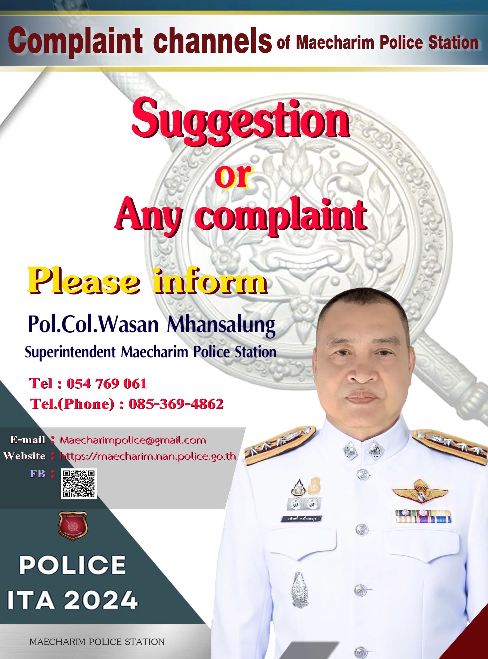 ประจำปีงบประมาณ พ.ศ.2567 ของสถานีตำรวจภูธรแม่จริม ประกาศไว้ท้ายของหน้านี้