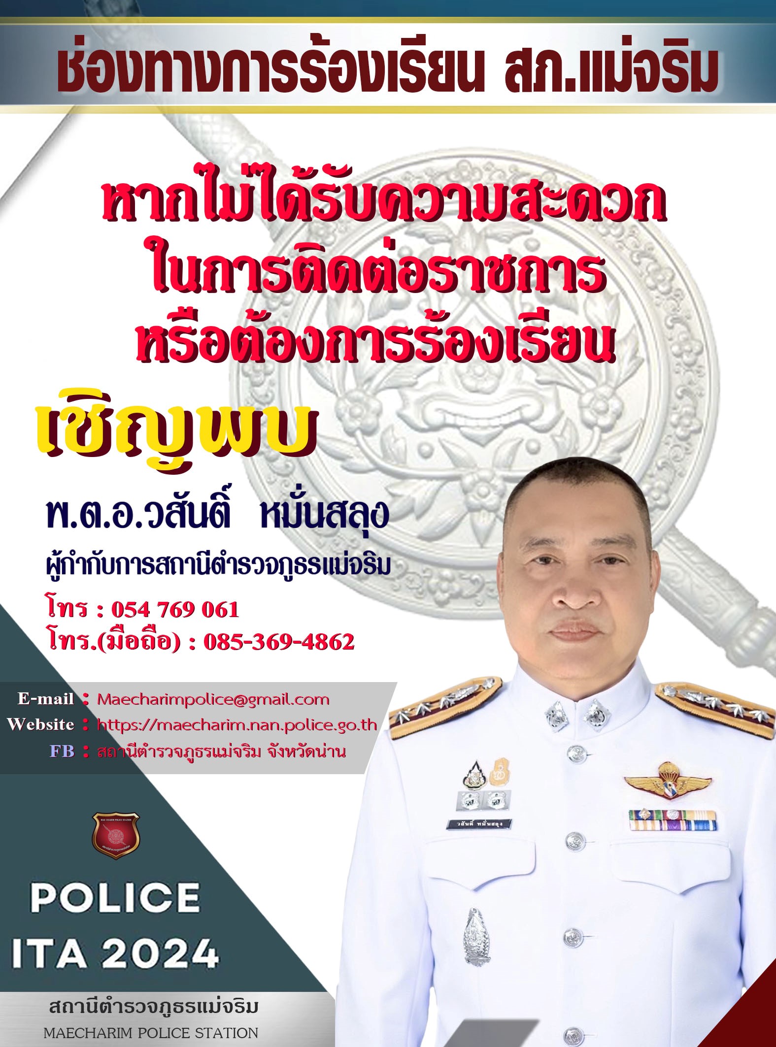 ผ่านแบบฟอร์ม ช่องทางออนไลน์ ของ สถานีตำรวจภูธรแม่จริม