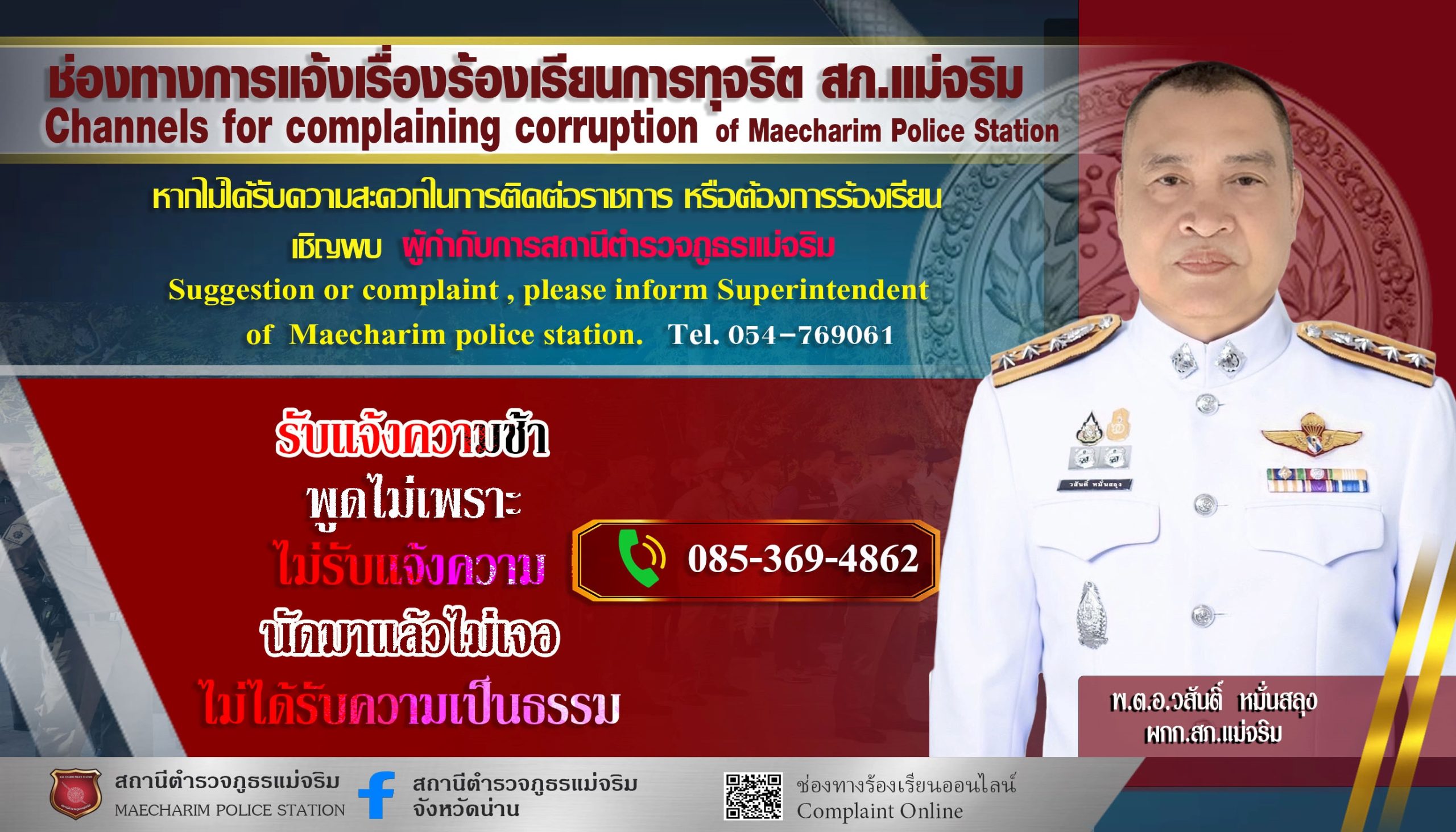 การทุจริต/แจ้งเบาะแสประพฤติมิชอบ ของเจ้าหน้าที่ ของ สถานีตำรวจภูธรแม่จริม
