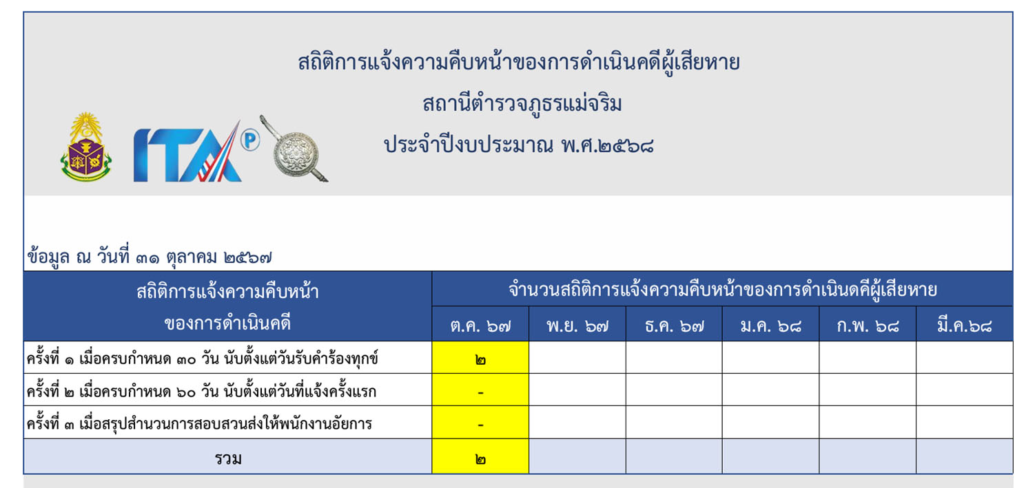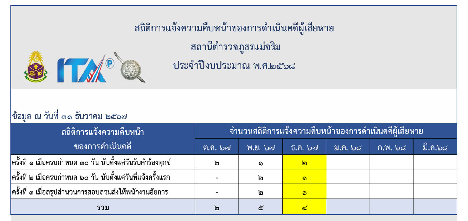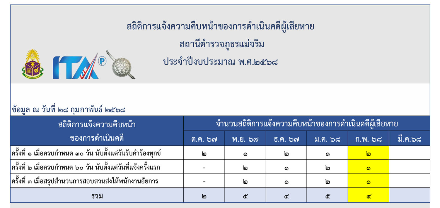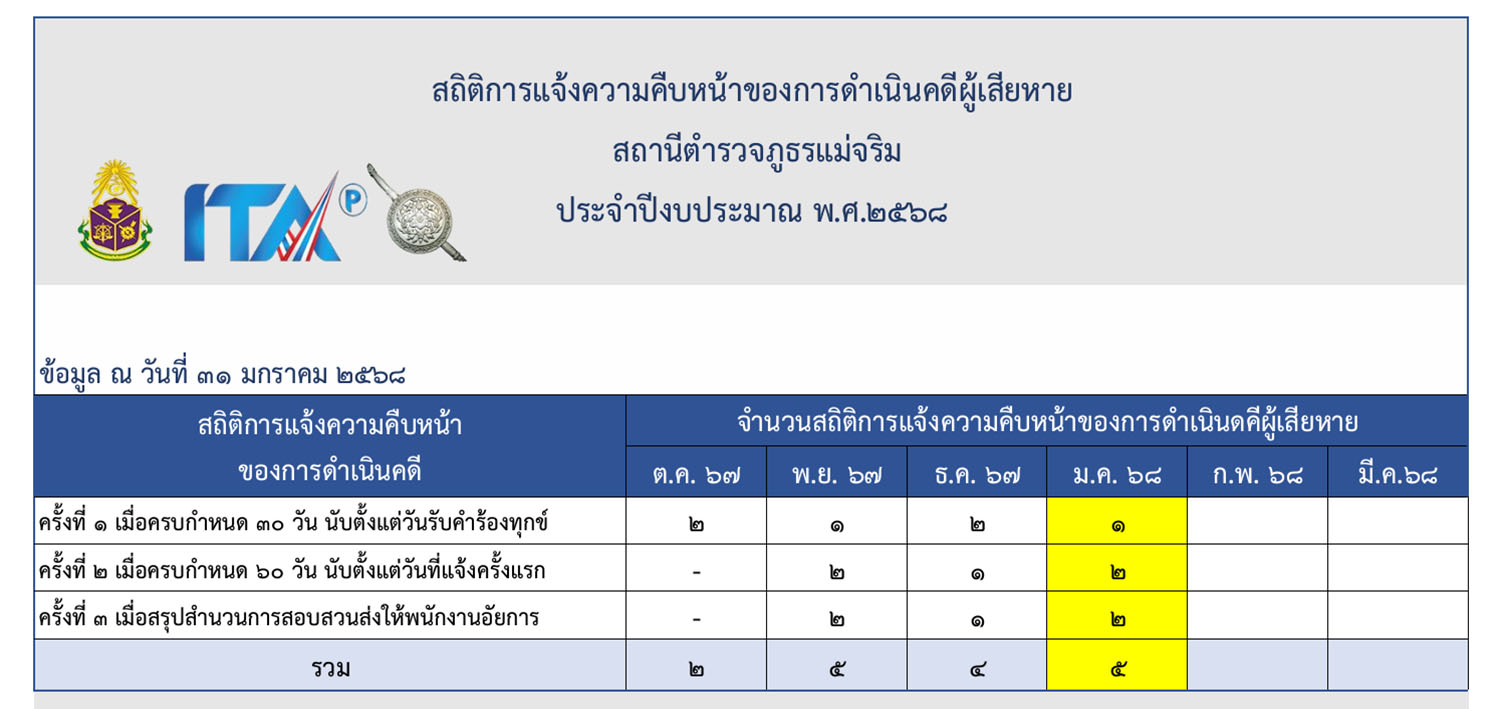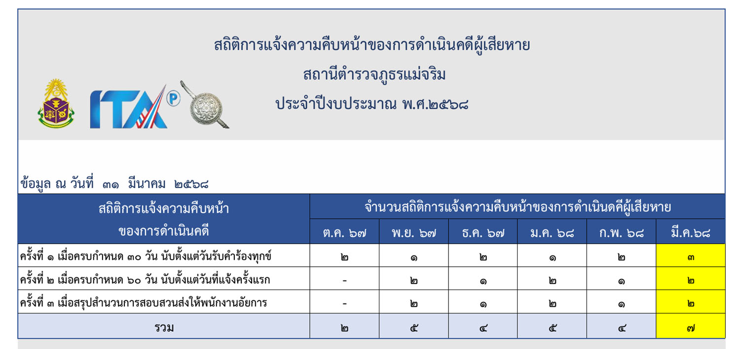 ข้อมูลเชิงสถิติการแจ้งความคืบหน้าของการดำเนินคดี