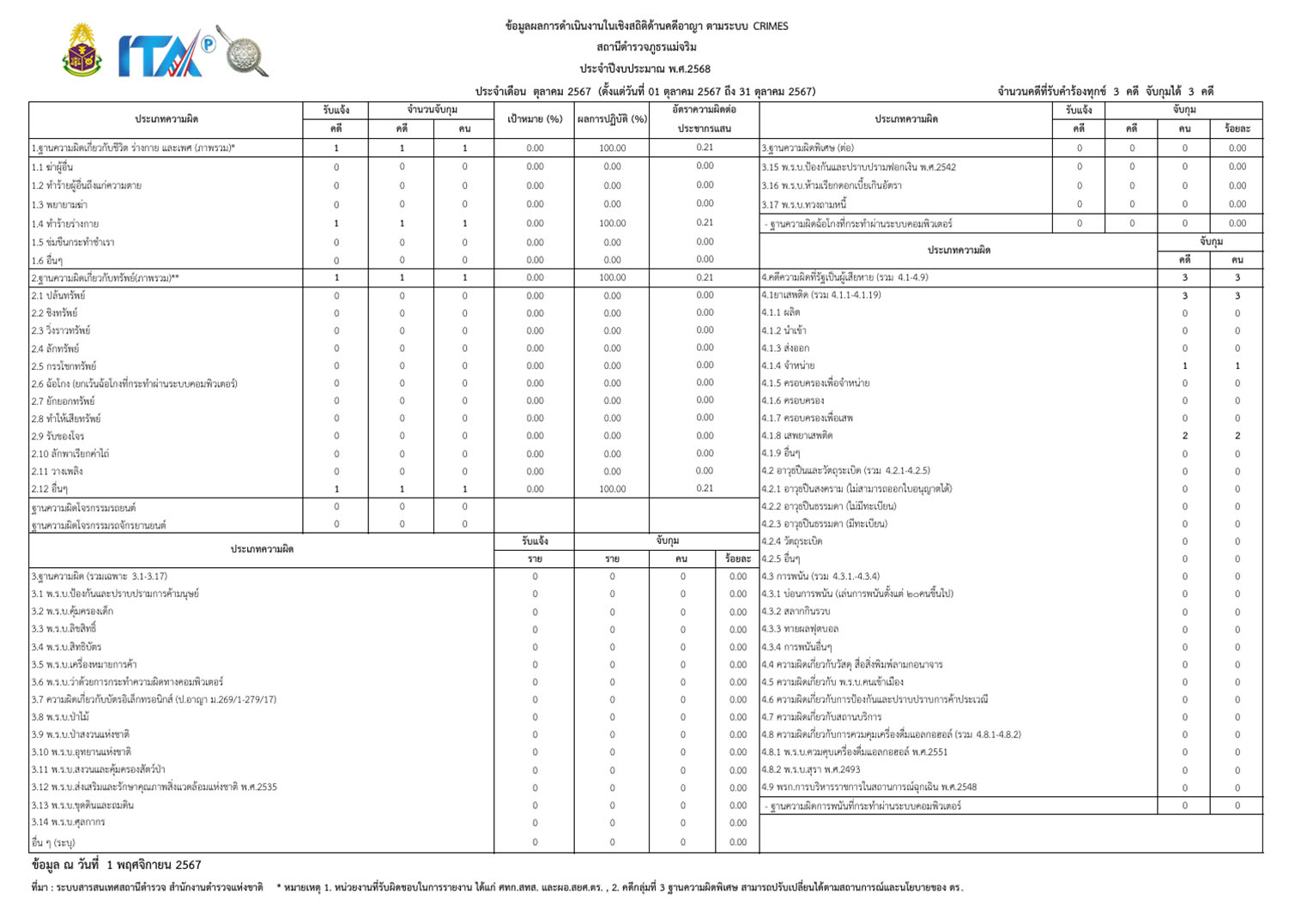 Download เอกสาร ข้อมูลผลการดำเนินงานในเชิงสถิติด้านคดีอาญา ตามระบบ CRIMES ประจำเดือน ตุลาคม 2567 ที่นี่ 👇
