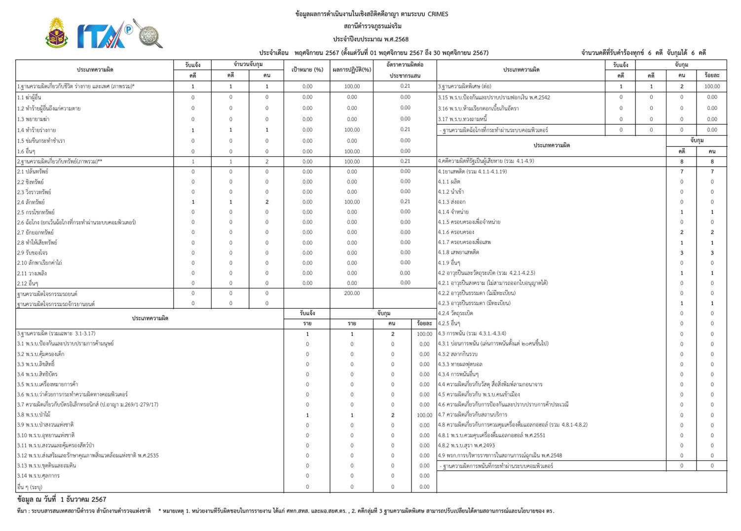 Download เอกสาร ข้อมูลผลการดำเนินงานในเชิงสถิติด้านคดีอาญา ตามระบบ CRIMES ประจำเดือน พฤศจิกายน 2567 ที่นี่ 👇