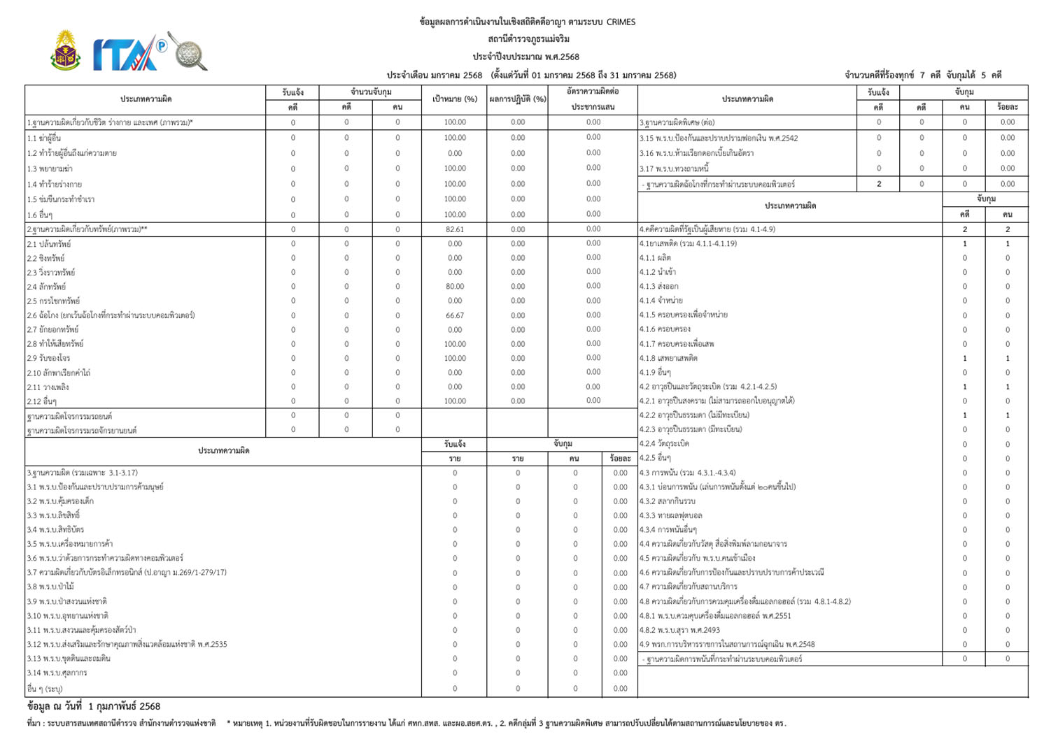 Download เอกสาร ข้อมูลผลการดำเนินงานในเชิงสถิติด้านคดีอาญา ตามระบบ CRIMES ประจำเดือน มกราคม 2568 ที่นี่ 👇