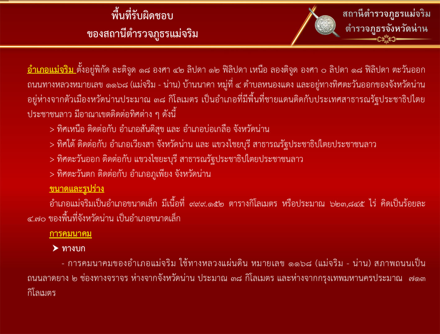 ข้อมูลพื้นที่รับผิดชอบ ของสถานีตำรวจภูธรแม่จริม