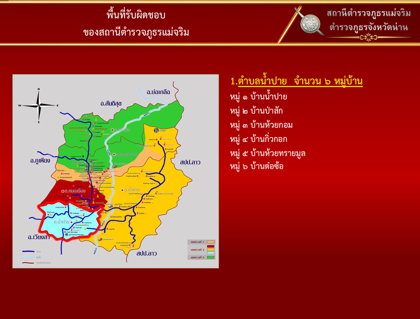 แผนที่แสดงเขตพื้นที่รับผิดชอบ ของสถานีตำรวจภูธรแม่จริม