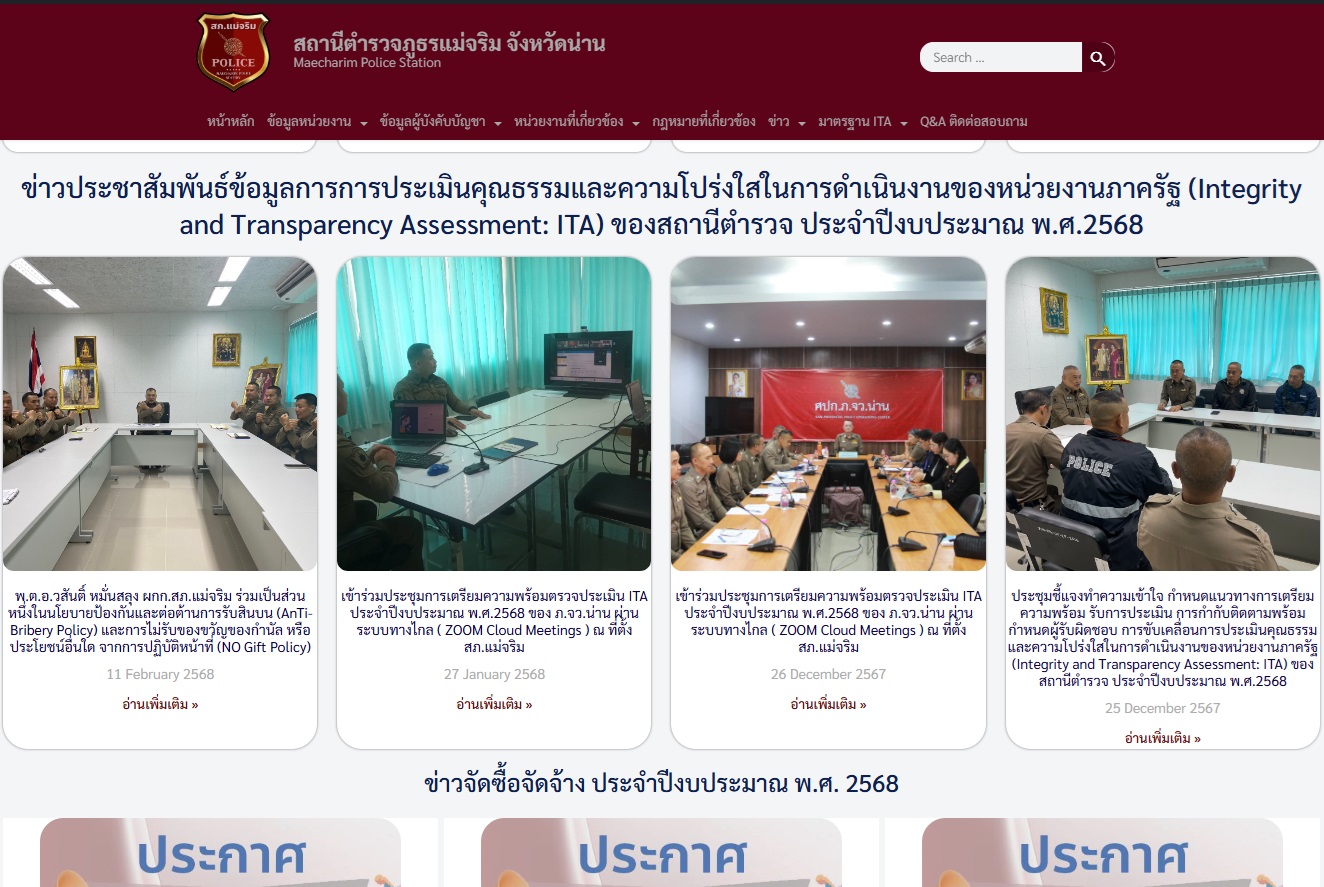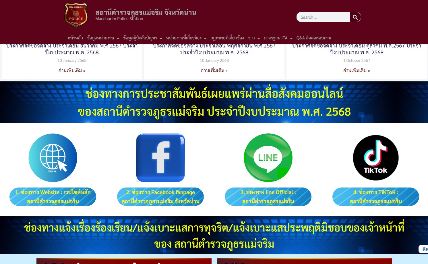ประชาสัมพันธ์ไว้บนหน้าแรกของเว็บไซต์หลัก ของสถานีตำรวจภูธรแม่จริม