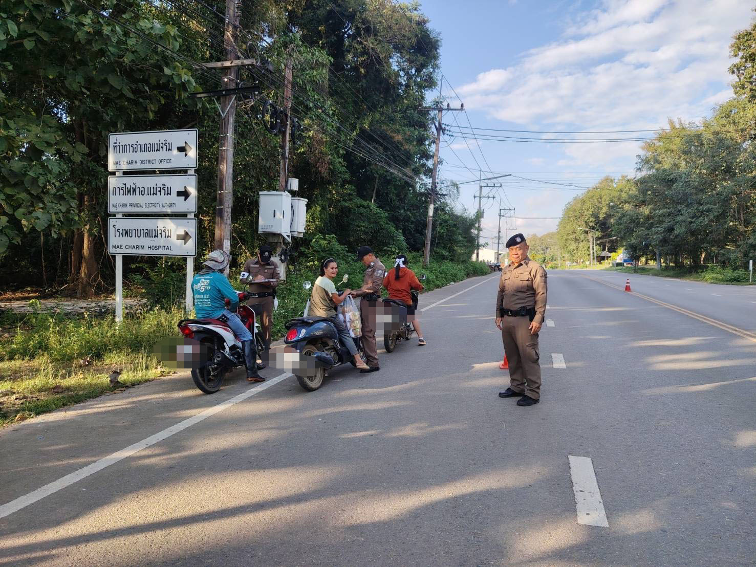 ตั้งจุดตรวจเพื่อกวดขันวินัยจราจรและป้องกันปราบปรามอาชญากรรม ณ จุดตรวจหน้า สภ.แม่จริม ต.หนองแดง อ.แม่จริม ตามแผนการขออนุมัติตั้งจุดตรวจในระบบ TPCC สภ.แม่จริม ภ.จว.น่าน วันนี้ (27 พ.ย.2568 เวลา 15.00 น.-17.00 น.) โดยการอำนวยการของ พ.ต.อ.วสันติ์ หมั่นสลุง ผกก.สภ.แม่จริม, พ.ต.ท.ธวัชชัย คำชื่น รอง ผกก.ป.สภ.นาหมื่น ช่วยราชการ สภ.แม่จริม, พ.ต.ท.มนตรี ขอดเตชะ สวป.สภ.แม่จริม มอบหมายให้ ร.ต.อ.สมควร ยศศรี รอง สว.(ป.) สภ.แม่จริม ปฏิบัติหน้าที่ ร้อยเวร 20 พร้อมด้วยสายตรวจรถยนต์ และ ชุดจราจร นำโดย ร.ต.อ.สมศักดิ์ สมทรง รอง สว.(ป.) สภ.แม่จริม, ร.ต.ท.กฤตญชญ์ อินตุ้ย รอง สว.(ป.) สภ.แม่จริม และ ส.ต.ท.ยุทธพิชัย ณ ลำปาง ผบ.หมู่ (ป.) สภ.แม่จริม ปฏิบัติหน้าที่ตั้งจุดตรวจเพื่อกวดขันวินัยจราจรและป้องกันปราบปรามอาชญากรรม ณ จุดตรวจหน้า สภ.แม่จริม ต.หนองแดง อ.แม่จริม ตามแผนการขออนุมัติตั้งจุดตรวจในระบบ TPCC ผลการปฏิบัติ ไม่พบสิ่งของผิดกฎหมาย แต่พบผู้กระทำความผิด พ.ร.บ.จราจรทางบก และได้ว่ากล่าวตักเตือน ลงระบบ PTM ดังนี้ 1.ไม่มีใบอนุญาตขับขี่ 17 ราย 2.ไม่สวมหมวกนิรภัย 39 ราย 3.ใช้รถมอเตอร์ไซค์ไม่ปลอดภัย 5 ราย รวมทั้งหมด 61 ราย