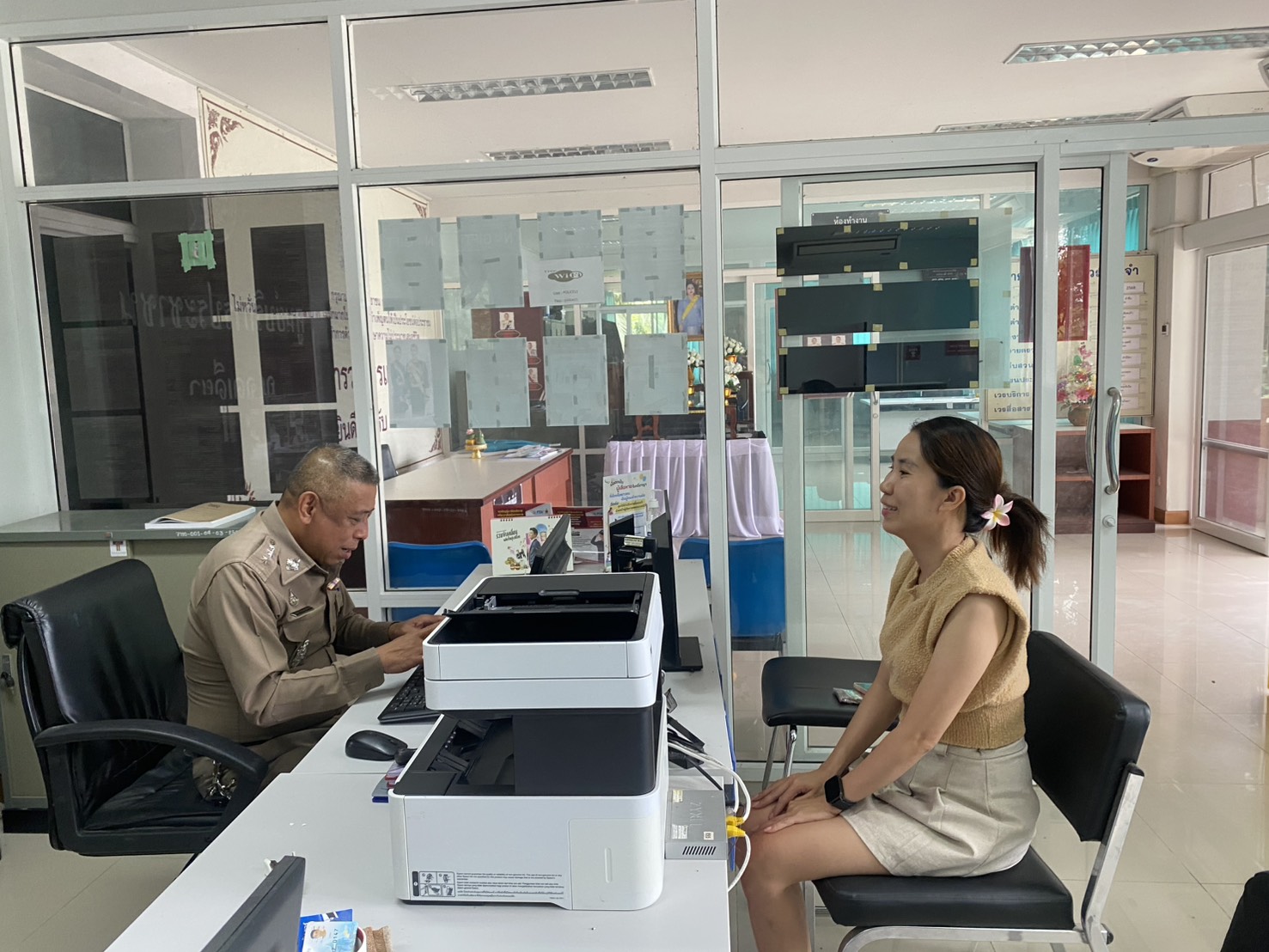 ร.ต.อ.อดุลย์ พรหมสกุลปัญญา รอง สว.(สอบสวน) สภ.แม่จริม ให้บริการประชาชนมาแจ้งความดำเนินคดีหมิ่นประมาทที่สถานีตำรวจ